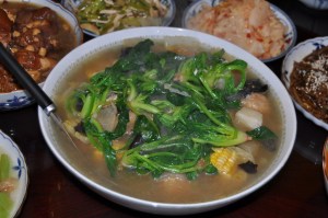 玉米蘿蔔丸子湯+菠菜
