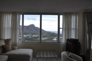 午餐後, Cate辦事去, Larry搭她的車, 我們四人回到Waikiki公寓. 進門不久, 大樓維護人員告知有一個浴室的馬桶漏水, 樓下的天花板因積水而崩塌, 要我們不要繼續使用那個馬桶. 我們通知了Cate, 她辦完事馬上趕來, 向大樓管理人員問清楚究竟, 打電話給保險公司, 並通知人在亞洲的Gilbert. Gilbert竟然透過Cate向我們道歉, 說是造成我們不便, 這種朋友應該多交幾個. Cate本想讓我們住靠近Waikiki海灘較好玩, 她現在則建議我們搬到她家, 我們四人稍作討論, 決定晚上搬家.