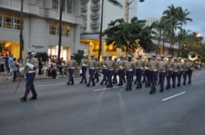 梳洗完畢休息片刻後, 我們走到Waikiki海灘, 由最東端開始漫步. 遊客真是不少, 沿途靠海灘的街道, 出現當地遊行隊伍, 似乎慶祝某節日.