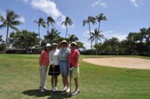 一清早起床, 安東尼甚是興奮要到著名的PGA(美國職業高爾夫球員聯盟)在夏威夷的比賽球場Waialae. 這球場在當地, 深受非會員批評它的太勢利眼, 要申請成為會員, 聽說不容易. Judith, Cate的朋友, 是老會員幫我們安排了兩組時間, HP, Francis和安東尼9:00開球, Cate, Emily, Judith和Vivian跟在我們後面. 進入球場後感覺不錯, 服務很好, 可惜球場正在做春天維護, 球道果嶺都在打洞(草才能充分呼吸, 長得更好), 雖然影響不是太大, 卻也經歷不到PGA球員比賽的球場優良狀況, 安東尼專心和Francis賽球, 疏失了海邊球場的美景. HP雖久未打球, 球技仍在, 他與安東尼同坐一車, 隨時幫安東尼加油打氣. 打玩球, 安東尼小贏Francis.
