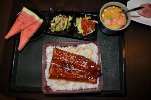 晚上一行四人與鳳娃,莫康(大舅子的大女兒和她老公)約好在Sumi介紹的百八魚場見. 此餐館不大, 多是定食. 東西果真新鮮又好吃. 安東尼猜想, 百八的名稱應是多數餐都是$180的原故, 真是”俗擱大碗”. 晚上鳳娃與莫康給大舅子買了個聞名的$800焦糖香蕉巧克力蛋糕, 雖好吃, 但貴了些.