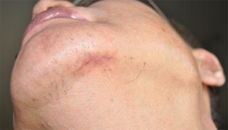 剛縫完10幾針後的下巴
