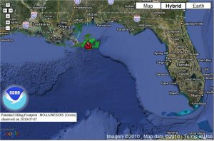 墨西哥灣漏油地點與受影響地區 (圖片來源: Google Map)