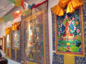 【註十二】唐卡是用彩緞裝裱懸掛供奉的一種宗教卷軸畫,亦稱唐喀,是藏文的音譯。藏語中唐表示廣袤無邊;卡為補白。