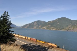 哥倫比亞峽谷Columbia River Gorge是今天的行程. 峽谷底是哥倫比亞河, 在Portland東邊130公里往西流. 河的北岸是華盛頓州Washington, 河南則為俄勒岡州Oregon. 峽谷最深1,200公尺. 我們由Portland往東開車, 一路走走停停, 到處都是小瀑布, 楓樹遍佈, 左手邊(北邊)的哥倫比亞大河甚為壯觀. 車開到Dalles城後, 往北過橋開進華盛頓州Washington, 延著哥倫比亞河回頭往西開, 風景卻不如俄勒岡州邊的美麗. 我們採Dave建議, 中途在Skamania 渡假村享用餐點, 然後回到舒適的民宿, 與Dave和Margaret在他們的菜園聊了好一陣子. 晚餐選了一家地中海式餐廳Mediterranean, 但是我們分不出是那個國家的, 像是不屬於地中海國家的伊朗餐, 重要的是, 蠻美味的.