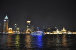 近7點,太陽已下山,背著相機背包,與薇薇安出了小區,走上中華路往北走,右轉進入白渡路往江西方向走到中山南路,再往北,10分鐘內就走到渡輪站。公交卡花了2元,搭乘最後一班有空調的渡輪,5分鐘抵達對岸的東昌站。下船後,沿者富城路往北走,相當失望,此段路距離江邊有幾十公尺,對岸的夜景被些私人建築和似乎是公園的樹擋住。心想,明明友人曾建議到浦東看浦西夜景,怎麼什麼都看不到? 一面想著,繼續再往北走,果真浦西夜景開始出現,雖然不錯,此景比起浦西看浦東的夜景,相差太多了,難怪人潮比上次在浦西散步時,有天地之別。