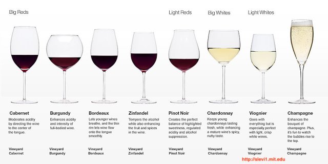 講究喝葡萄酒,所用的葡萄酒杯形狀不同。簡單的例子以勃艮第杯比較波爾多杯的不同,勃艮第紅酒多以單一葡萄種釀成,香氣不是太複雜,釋放速度較快,酒杯胖肚口縮,波爾多紅酒多以數種葡萄酒釀製,香氣複雜,釋放速度較慢,杯肚深,杯口縮口不明顯。
