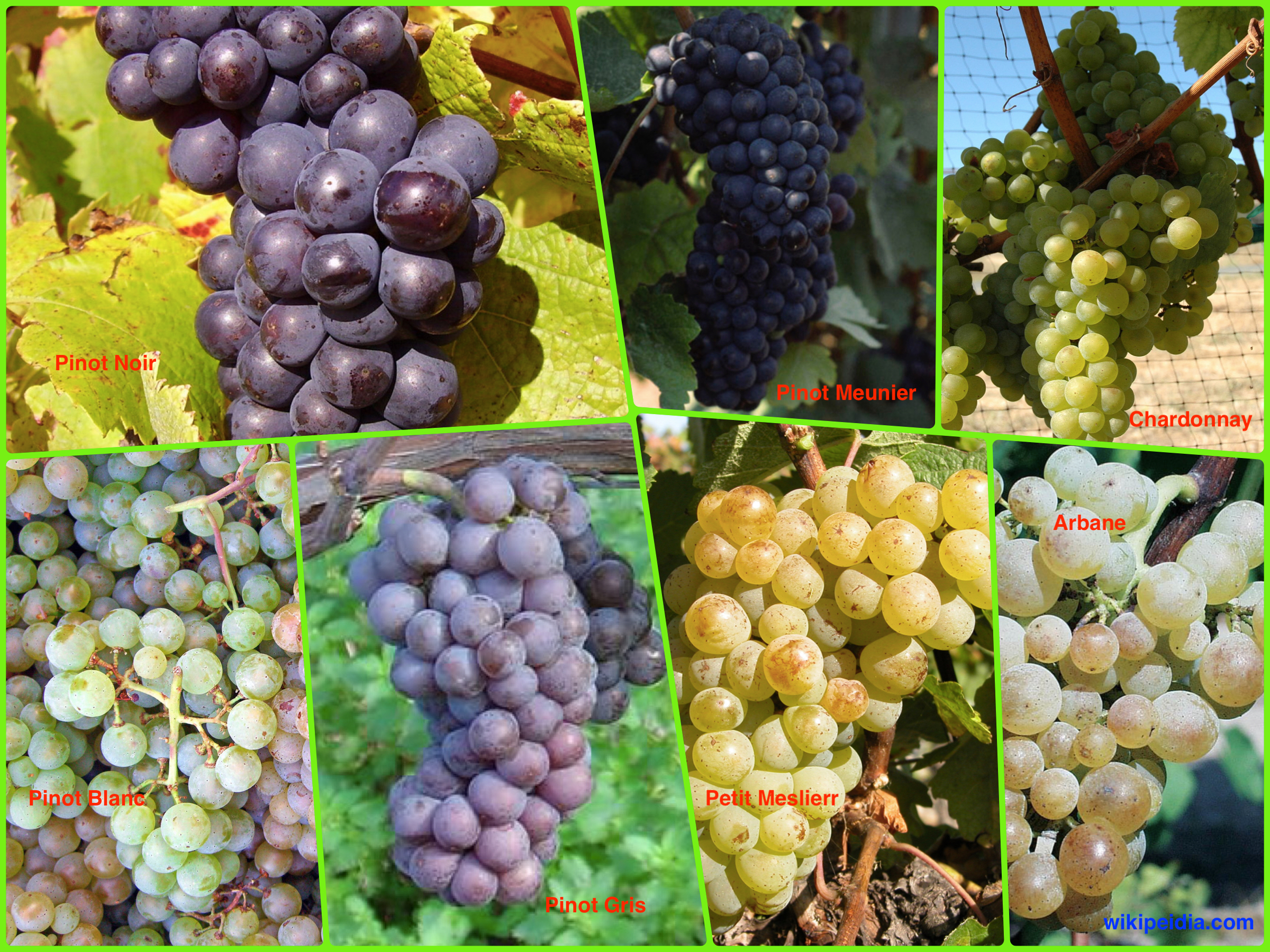 黑皮諾 Pinot Noir 種植在 Montagne de Reims 與 Cote des Bar,Pinot Meunier 種植在 Epernay 和 馬恩谷 Marne Valley,夏多內則種植在 Cote des Blancs 與 Sezannais。本區也種植一些較古老的葡萄種,如 白皮諾 Pinot Blanc, 灰皮諾 Pinot Gris,Petit Meslier 與 Arbane 等。
