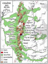 此山脈在奧弗涅區極具特色,從各式火山爆發在95000~85000年前形成80座山峰,延綿40公里長,火山下還有岩漿存在。