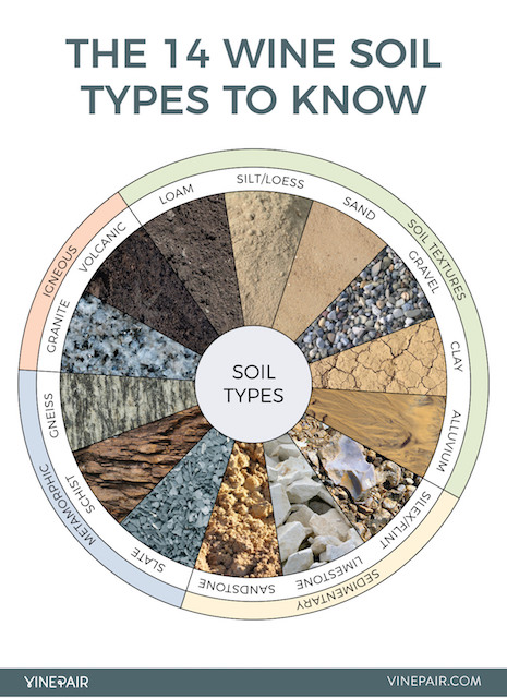 種植釀酒葡萄的土壤有主要的5大類土壤,其中再細分為14種。