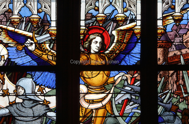 聖女貞德生於西元1412年,她在1425年聲稱經驗神蹟,受天使聖額爾 St. Michael 聖瑪加利大 St. Magaret 和聖加大肋納 St. Catherine 啓示,要求她帶兵收復當時被英格蘭人佔領的法國失地。1428年前往伏古勒 Vaucouleurs 見當地駐防指揮官 Robert de Baudricourt,希望能帶她去王儲查理所在地希農 Chinon,但遭拒絕。隔年在兩名士兵的支持下獲第二次接見,談話中說出一些神奇戰情預報,預言法軍將在奧爾良附近戰役失敗。當前線傳來預言證實後,Baudricourt 同意護送她到希農。1429年5月,聖女貞德帶領法軍收復奧爾良。她在1430年5月23日的一場小規模戰爭被俘虜,1431年5月30日在盧昂 Rouen 被處死刑。1871年,許多法國城鎮豎立聖女貞德雕像紀念她。