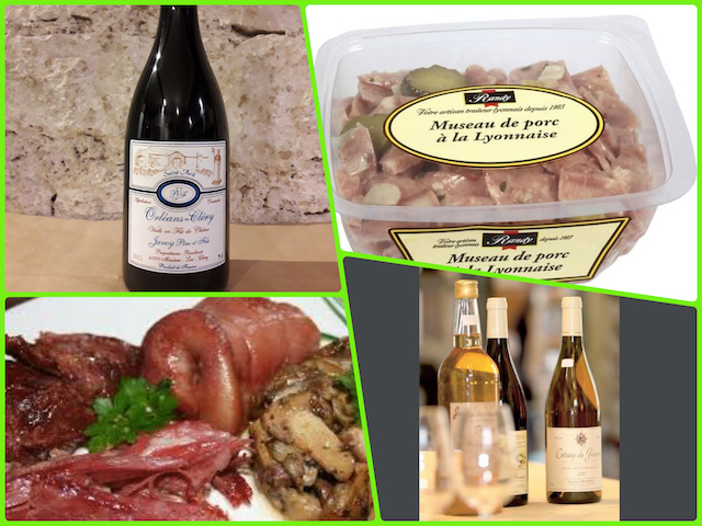 AOC Orleans 以灰皮諾釀製帶白花香的乾白葡萄酒與帶紅莓類芳香的玫瑰紅和紅葡萄酒。AOC Orleans Clery 以 Cabernet Franc 釀製水果味的紅酒。適合配食豬鼻肉 Museau de Porc 等.