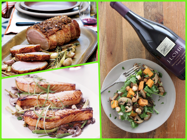一般而言 Pinot Noir 在酒杯裡呈紅寶石顏色,帶著櫻桃、蔓越梅、菸草、紅茶、等香味,單寧味有如喝茶,酸度適中,口感細緻,可以配食的食物眾多,如烤鮭魚、烤豬肉、燉鴨胸肉與烤菇類都是絕配。(圖片來源:wanderandwine.com, foodandwine.com)