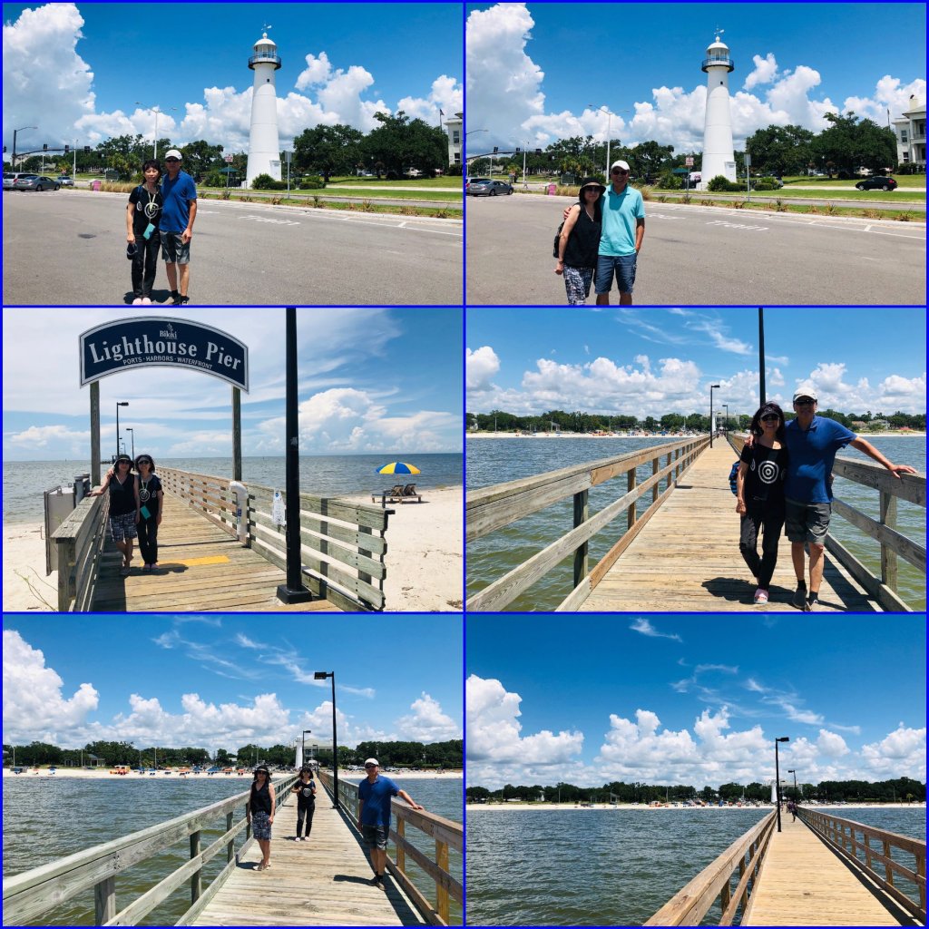 Biloxi 原本是密西西比州的第三大城,2005年8月 Katrina 颶風摧毀不少建築物,許多居民搬離該城市,現為第5大城,人口約4萬5千。城市濱海燈塔在招待所對街,有些遊客;附近的 Beauvoir 地產為南北戰爭時期,南方總統 Jefferson Davis 戰後居所。我們抵達 Beauvoir 時,看不到任何人,決定拍照留念不作逗留。