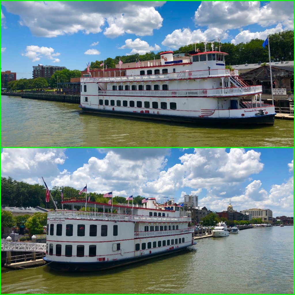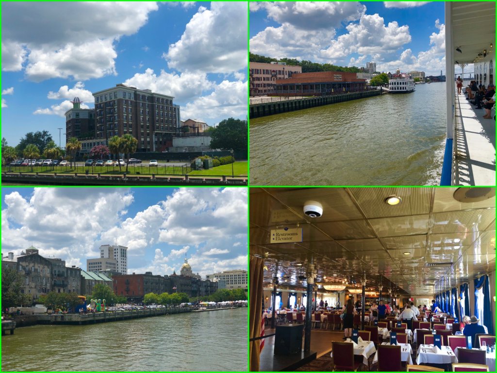 行程計劃抵達 Savannah 後隨即搭乘河輪。此次 road Trip,各地氣溫頗高,長途車程後在河輪的冷氣餐廳裡享受午餐,雖然餐點不怎麼樣,正好休息也不錯,只是安東尼覺得收費偏高,似乎可以有不同的安排。