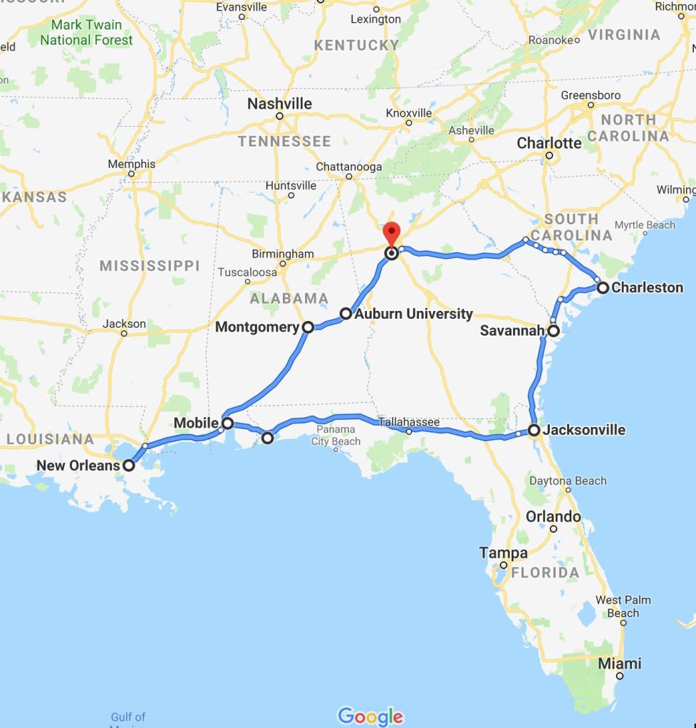 行程最後一天由 Charleston 回到第一天抵達的城市 Atlanta。途中經過職業高爾夫球滿貫賽之一的名人賽 The Masters 球場,決定路過。雖然網路搜索得知網民一致呼籲除了球賽當週,無法參訪球場,我們還是前往。