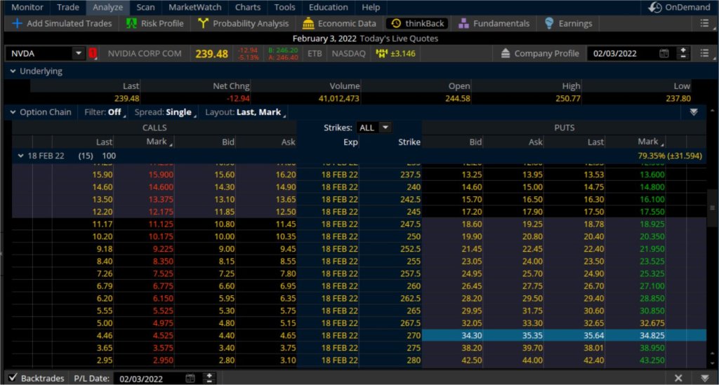 近期美國股票市場動盪不安, 一般股價大跌, NVDA 不例外. 2022/02/03 當天, 所賣合同權利金約為 $34.85, 虧損頗多, 建議繼續持合同, 觀看股市視機行動. 一般合同在到期日前, 不會被執行.