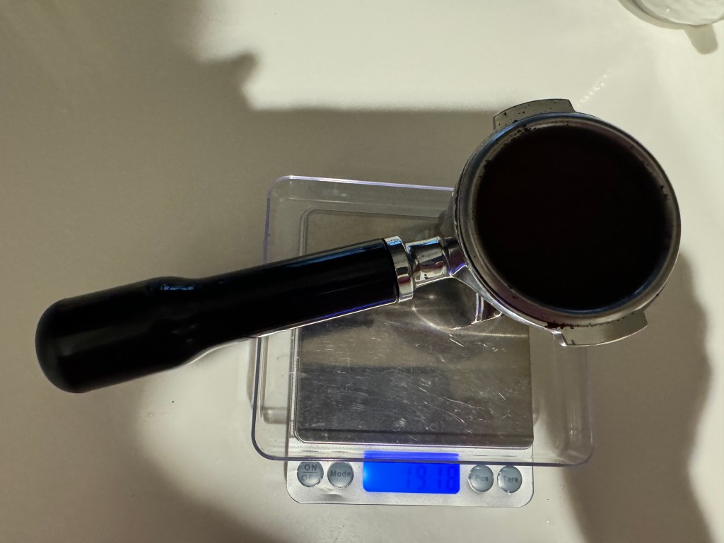 安東尼通常用18~20克的咖啡粉,也稱為雙份double shot ,經過約25~30秒萃取約60克的濃縮義式咖啡 espresso 。我早上起床盥洗後第一件事,配著少許麵包或蛋糕食物,防止空肚飲用咖啡,常直接飲用 espresso ,通常一般人不習慣飲用如此濃厚的咖啡。